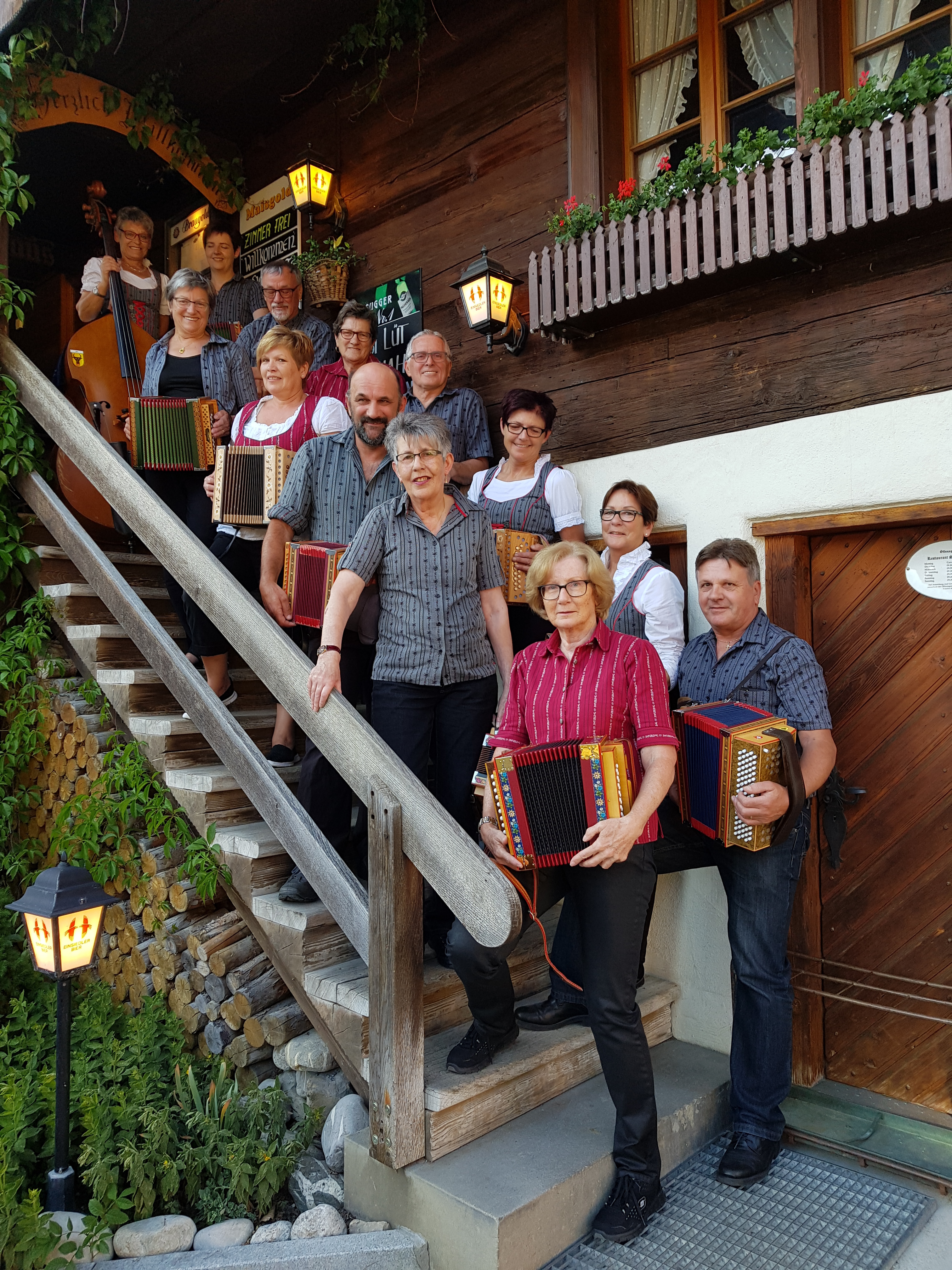 Die Vielfalt der Musikinstrumente zeigt die Vielfalt unserer Musik: Volks- und Folkmusik, Musikstücke und Tänze aus der Schweiz und ganz Europa bis hin zu Klezmer-Stücken stehen auf unserem Programm.